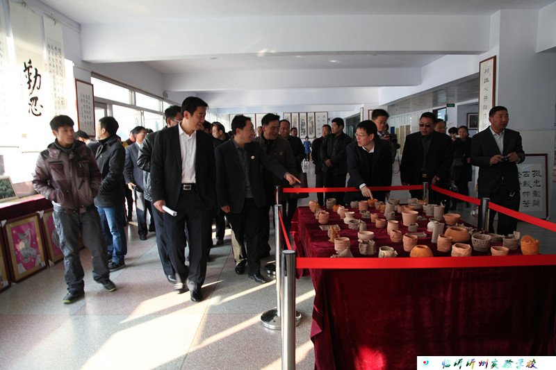 二是學(xué)生作品琳瑯滿(mǎn)目。在教學(xué)樓一樓門(mén)廳、樓道墻壁上,擺滿(mǎn)了學(xué)生各種作品。有陶藝、布藝、攝影、書(shū)法、繪畫(huà)、實(shí)踐作業(yè)等600余件。一幅幅書(shū)畫(huà)作品、一件件手工制作、一項(xiàng)項(xiàng)藝術(shù)設(shè)計(jì),鍛煉了學(xué)生動(dòng)手、動(dòng)腦能力,陶冶了文化藝術(shù)情操。在講解員的引領(lǐng)下,與會(huì)領(lǐng)導(dǎo)邊走邊看,不時(shí)駐足欣賞著學(xué)生的精美作品。