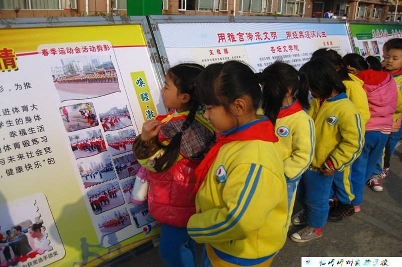 一是活動(dòng)展板內(nèi)涵豐富。制作了《建設(shè)科技校園,放飛科技?jí)粝搿贰ⅰ蹲叱鰢?guó)門(mén),創(chuàng)造輝煌》、《童蒙養(yǎng)正,少年養(yǎng)志》、《課程育人,全面發(fā)展》、《展示藝術(shù),快樂(lè)成長(zhǎng)》、《雅言傳承文明,經(jīng)典浸潤(rùn)人生》、《社會(huì)實(shí)踐拓眼界,特色活動(dòng)促發(fā)展》、《生動(dòng)動(dòng)、活潑潑、快樂(lè)樂(lè)、水靈靈》等32個(gè)展板,展現(xiàn)了素質(zhì)教育開(kāi)展的精彩瞬間。