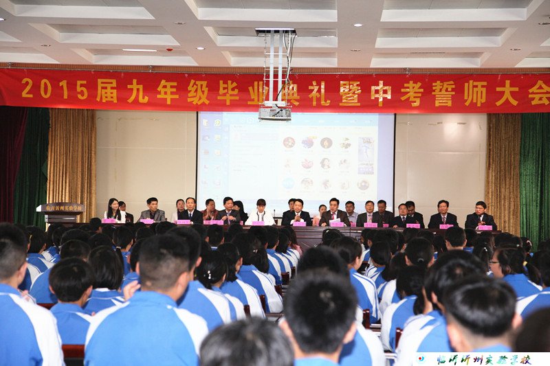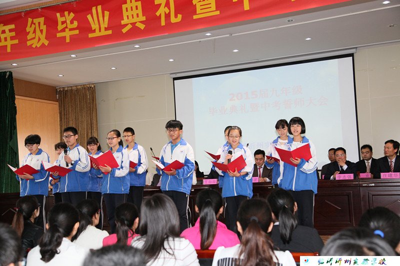 2015年5月15日上午8點,我校九年級全體師生在五樓禮堂隆重召開了2015屆畢業(yè)典禮暨中考誓師大會。