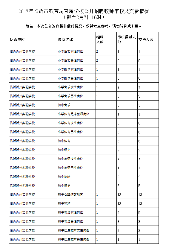 20170207職位統(tǒng)計·臨沂沂州實驗學校