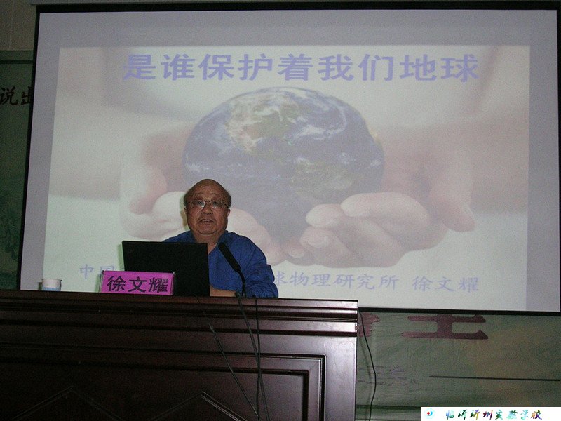 徐教授的報(bào)告內(nèi)容涉及地球、宇宙、大氣等知識(shí)。圍繞“人類是幸運(yùn)的、地球又是不安全不干凈不富有的、如何讓地球變得更加美好”三個(gè)方面,以圖文結(jié)合的形式,給同學(xué)們展示了地球現(xiàn)狀,介紹了地震、洪水、火山爆發(fā)等自然災(zāi)害;分析了環(huán)境污染、溫室效應(yīng)導(dǎo)致全球變暖和土地荒漠化等人為災(zāi)害,給人類帶來(lái)的傷亡和損失。用生動(dòng)形象的語(yǔ)言,講述了天文學(xué)、地磁學(xué)等方面的科普知識(shí),讓大家深受教育和啟發(fā)。