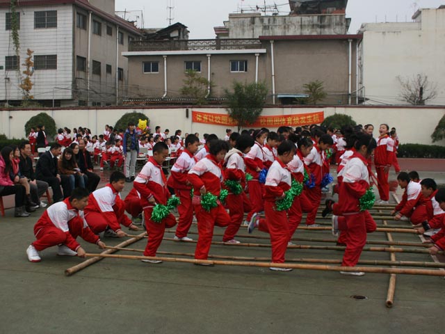 隨后,分年級(jí)各自展示了竹杠舞、兔子舞、跳小繩、跳大繩、踢毽子、廣播操、隊(duì)列隊(duì)形七項(xiàng)比賽。同學(xué)們個(gè)個(gè)精神振奮,神采飛揚(yáng),充滿朝氣,盡顯活力?,F(xiàn)場(chǎng)氣氛熱烈,活動(dòng)精彩紛呈。其中,小學(xué)部展示的竹竿舞、跳大繩,中學(xué)部展示的兔子舞和隊(duì)形隊(duì)列給現(xiàn)場(chǎng)師生留下了深刻的印象和美好的回憶。讓大家真切感受了陽(yáng)光體育的情趣和魅力,體驗(yàn)了趣味活動(dòng)帶來(lái)的激情和歡樂。