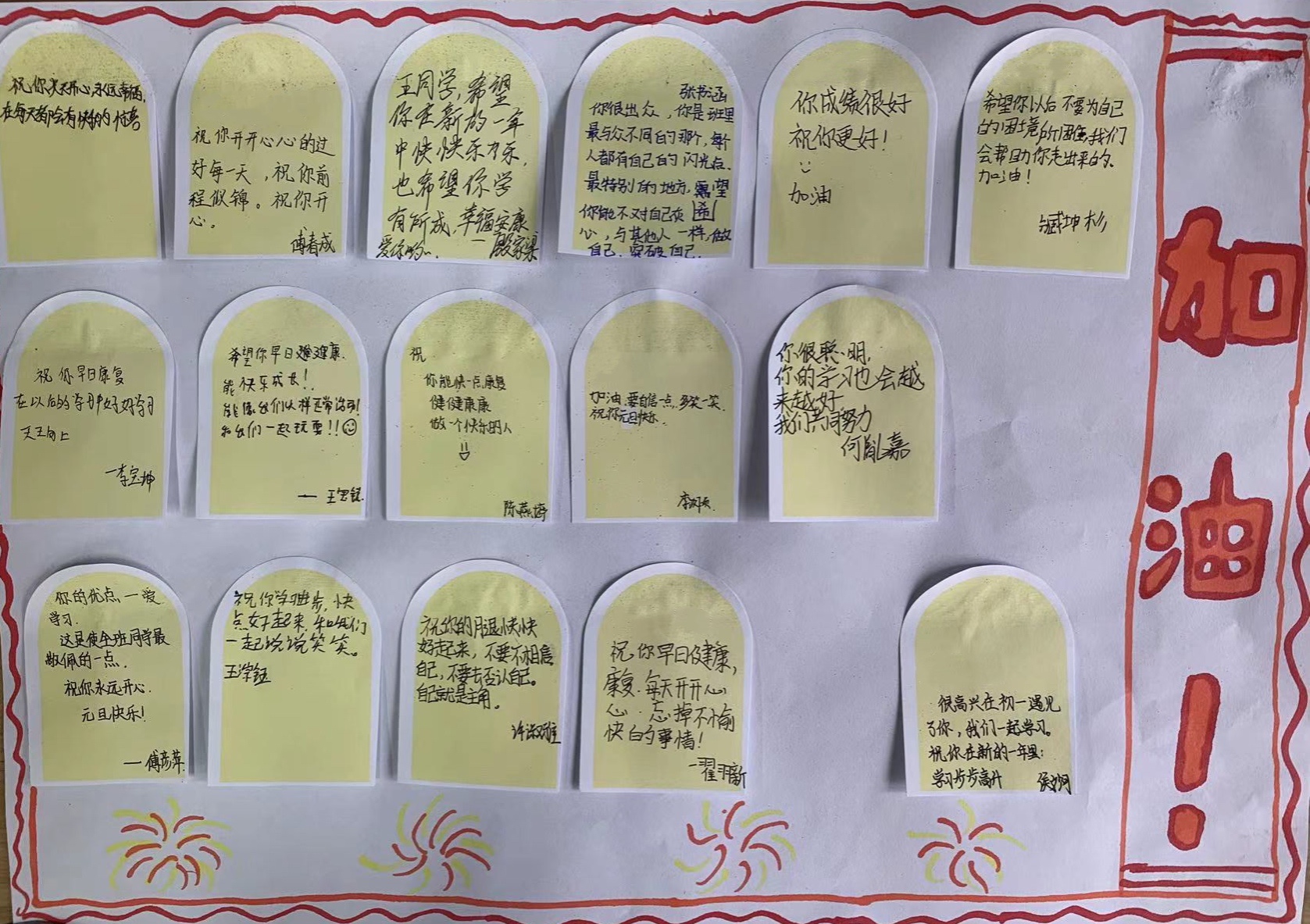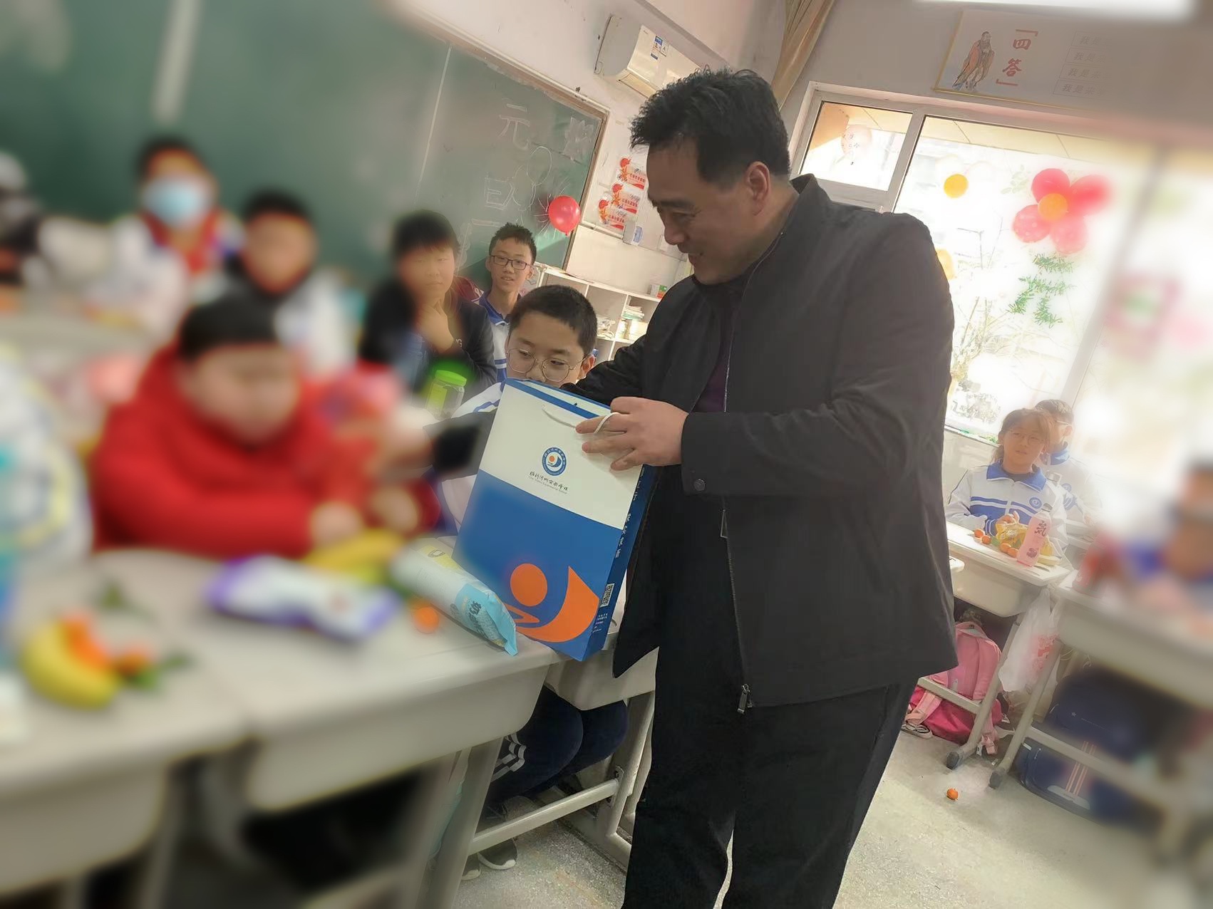 原來,在前一天,校長徐勤波和班主任韓淑霞,以及所有任課教師和同學們,共同為王曾亮策劃了一場別開生面的元旦晚會?!昂芨吲d在初一遇見了你,我們一起學習?!薄澳愫艹霰?,你是班里最與眾不同的那個!”“你是班里最可愛的人,還是一個大學霸?!薄拔蚁M阆窈悺P勒一樣敢于挑戰(zhàn)命運的不公!”……一張張送給王曾亮的卡片上寫滿了同學們對他的贊美與祝福。徐校長也為他帶來了一份裝滿書籍、筆記本和文具盒的禮包,王曾亮在笑聲中度過了這樣一個特別的元旦節(jié)?!罢娴奶@喜了!老師和同學們對我的關懷,讓我有更大的動力學習!”王曾亮說,盡管平日里上學困難重重,但這樣的學校生活是他一直無比向往的,和老師、同學們相處的日子如春日暖陽般溫暖著他。