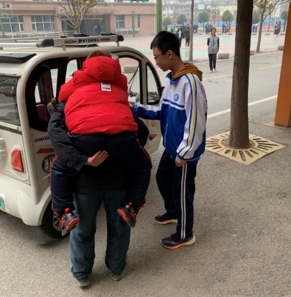 其實,在平時,學校、老師和同學們就不留余力地盡可能為他提供便利。學校大門口到教學樓的距離并不近,走這樣一段距離,對于其他同學而言或許沒什么,但對于王曾亮來說,就是一個不小的難題。除此之外,王曾亮平時上廁所需要穿過長長的走廊,對他而言也是極為不便的。
