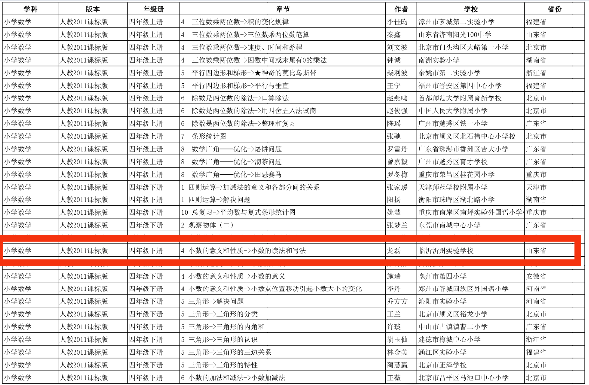 在教育部組織的2021年度“基礎(chǔ)教育精品課”活動的評選中,我校龍磊老師經(jīng)過臨沂市、山東省、教育部層層選拔,所執(zhí)教的《小數(shù)的意義和性質(zhì)-小數(shù)的讀法和寫法》被評為部級精品課,取得了驕人的成績。從接到通知,龍磊老師十天內(nèi)完成了從選課、腳本設(shè)計、課件制作、習題設(shè)計、微課錄制的全部工作。能夠從眾多選手中脫穎而出,充分顯示了龍老師的教學實力。