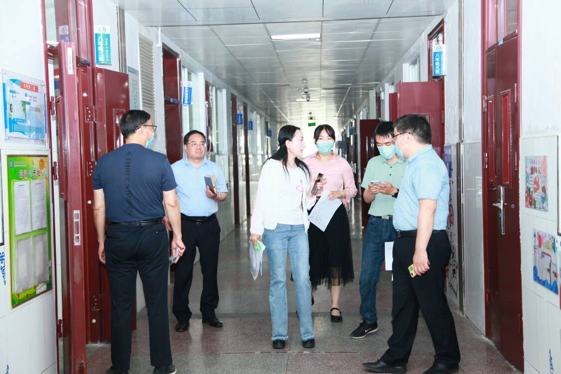 為確保2022年中考順利進(jìn)行,營造規(guī)范標(biāo)準(zhǔn)、安全有序的良好考試環(huán)境,5月25日上午,蘭山區(qū)招生委員會各位領(lǐng)導(dǎo)在蘭山區(qū)教體局黨組成員、副局長李公德,區(qū)體育發(fā)展中心副主任于洪濤、區(qū)教育考試中心副主任徐靜的帶領(lǐng)下,一行7人到我校檢查2022年中考考前準(zhǔn)備工作。我校黨委書記、校長徐勤波,黨委委員、副校長李志強,黨委委員、副校長張福生及相關(guān)科室主任全程陪同。