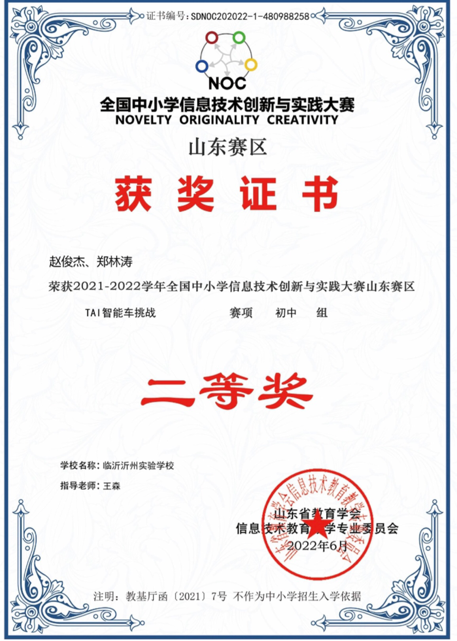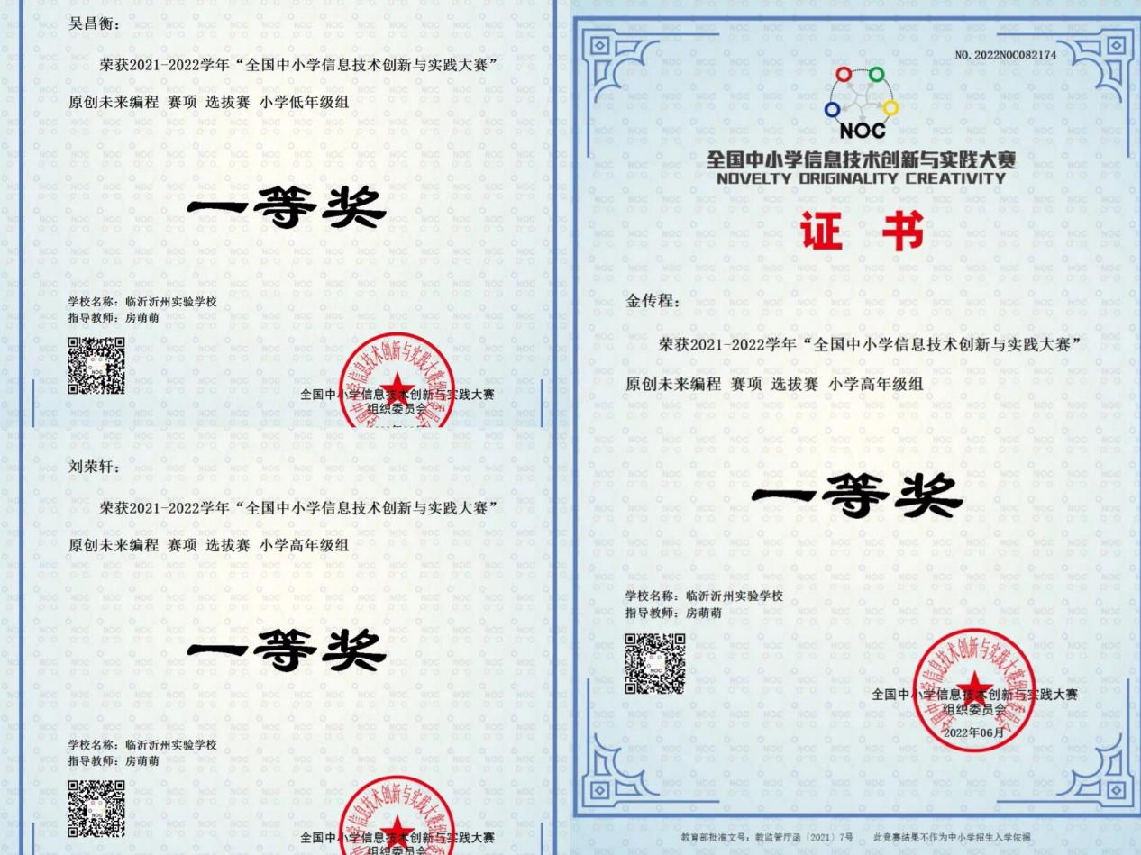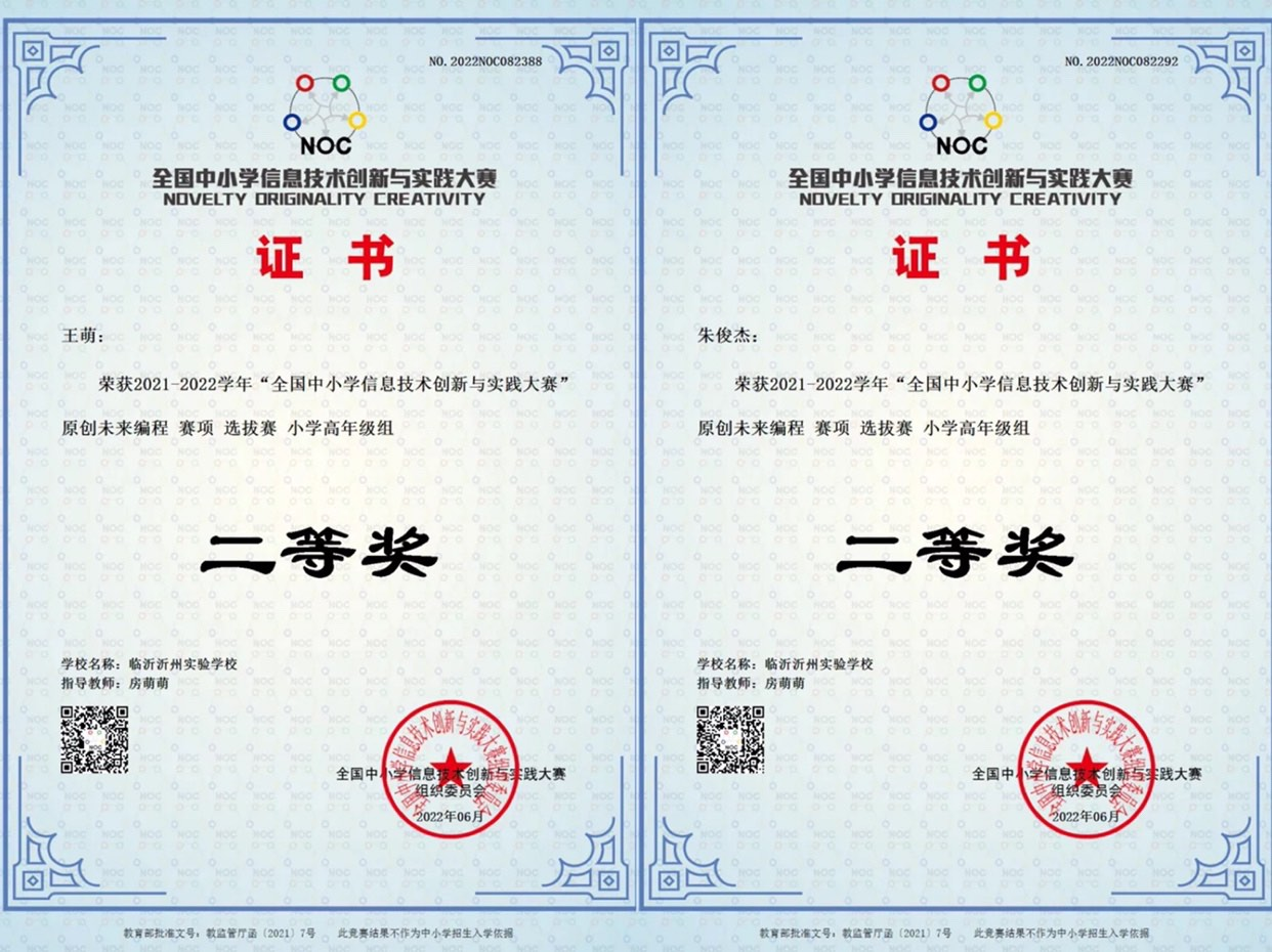 近日,在“2021-2022學(xué)年全國中小學(xué)信息技術(shù)創(chuàng)新與實踐大賽”山東大區(qū)公布的成績中,臨沂沂州實驗學(xué)校在“原創(chuàng)未來編程”與“TAI智能車挑戰(zhàn)賽項的選拔賽”中喜獲佳績,獲得了一等獎3名、二等獎4名、三等獎5名的好成績,其中有5名同學(xué)晉級全國總決賽。