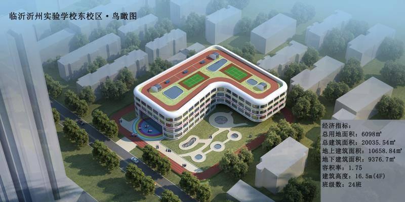 東校區(qū)總建筑面積為19225.02m2。其中地上教學(xué)樓(4F)建筑面積10341.50㎡,設(shè)24口教室、2口美術(shù)書(shū)法教室、3口音樂(lè)教室、2口舞蹈室、1個(gè)繪本館、1口錄播室、1口科技實(shí)驗(yàn)室、2口會(huì)議室,教師辦公室12個(gè)。地下(2F)建筑面積8883.52㎡,設(shè)720人大禮堂一口、籃球館一口、地下車(chē)庫(kù)及泵房等設(shè)施。建設(shè)300米塑膠跑道,樓頂建設(shè)小型足球場(chǎng)地及植物園。