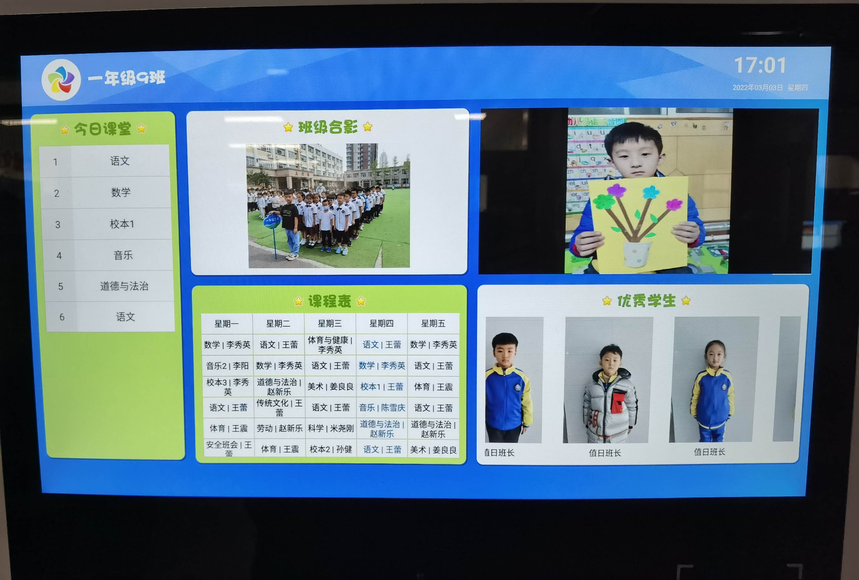 每個(gè)班級(jí)智慧班牌,集學(xué)生考勤,測(cè)溫,課程表和班級(jí)宣傳于一體。