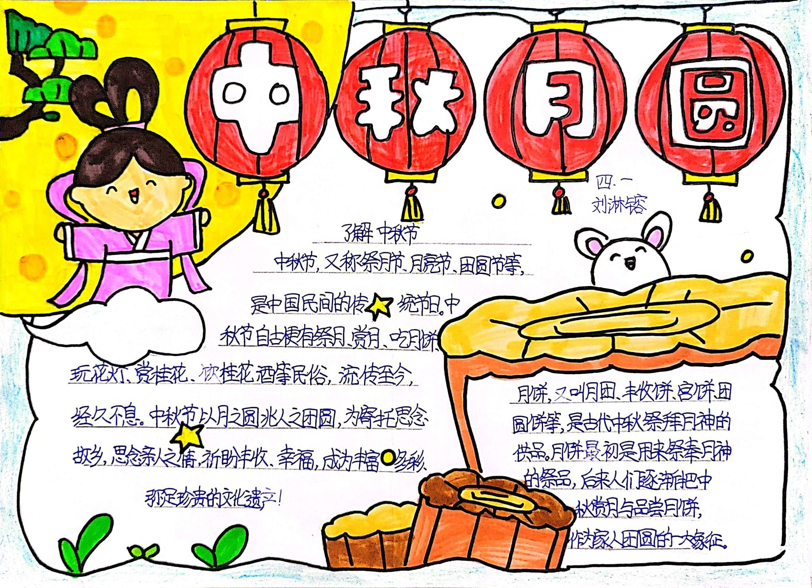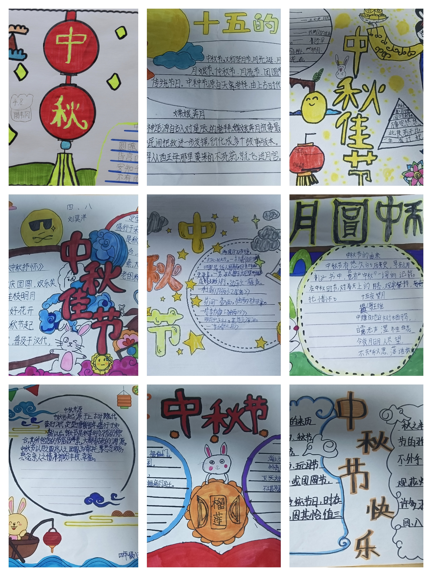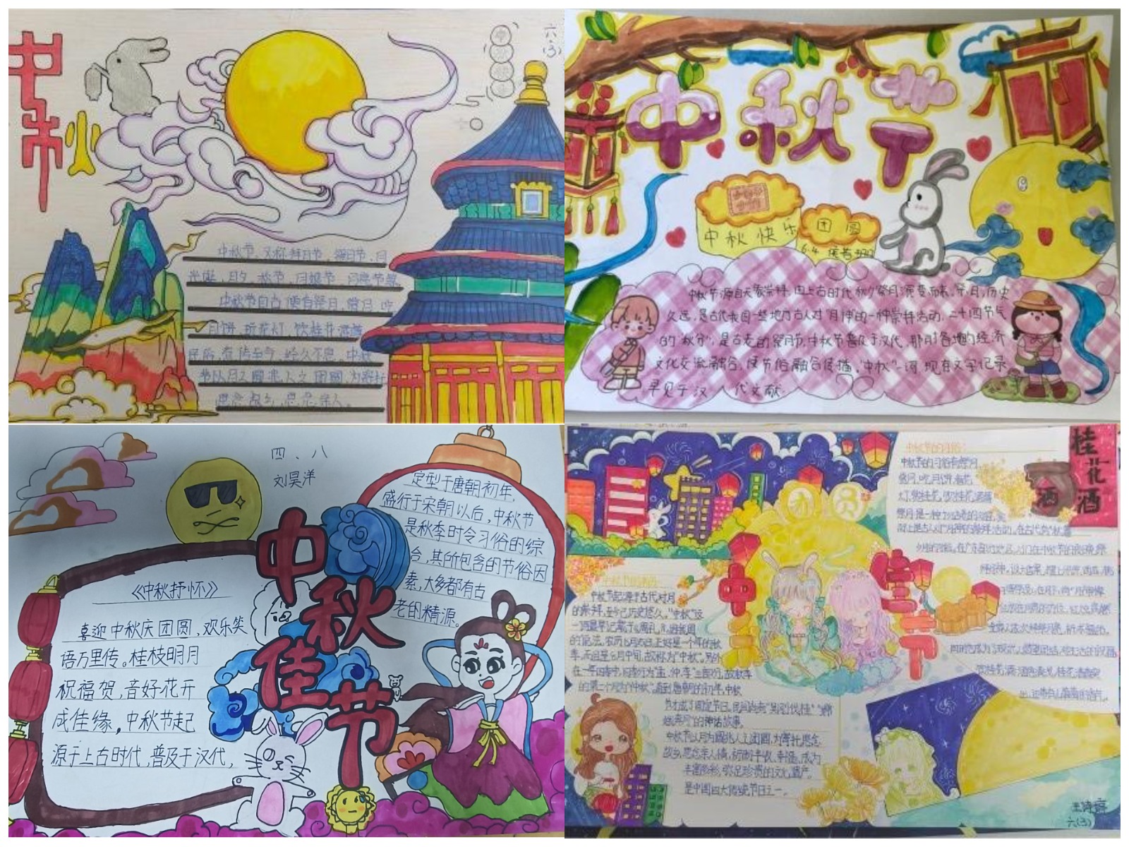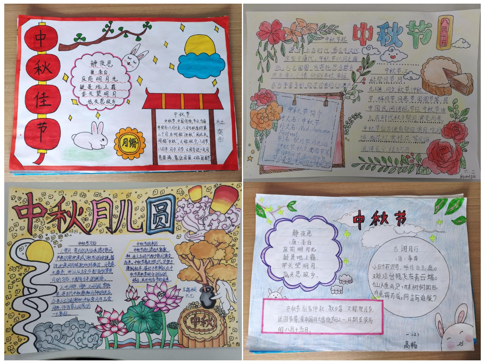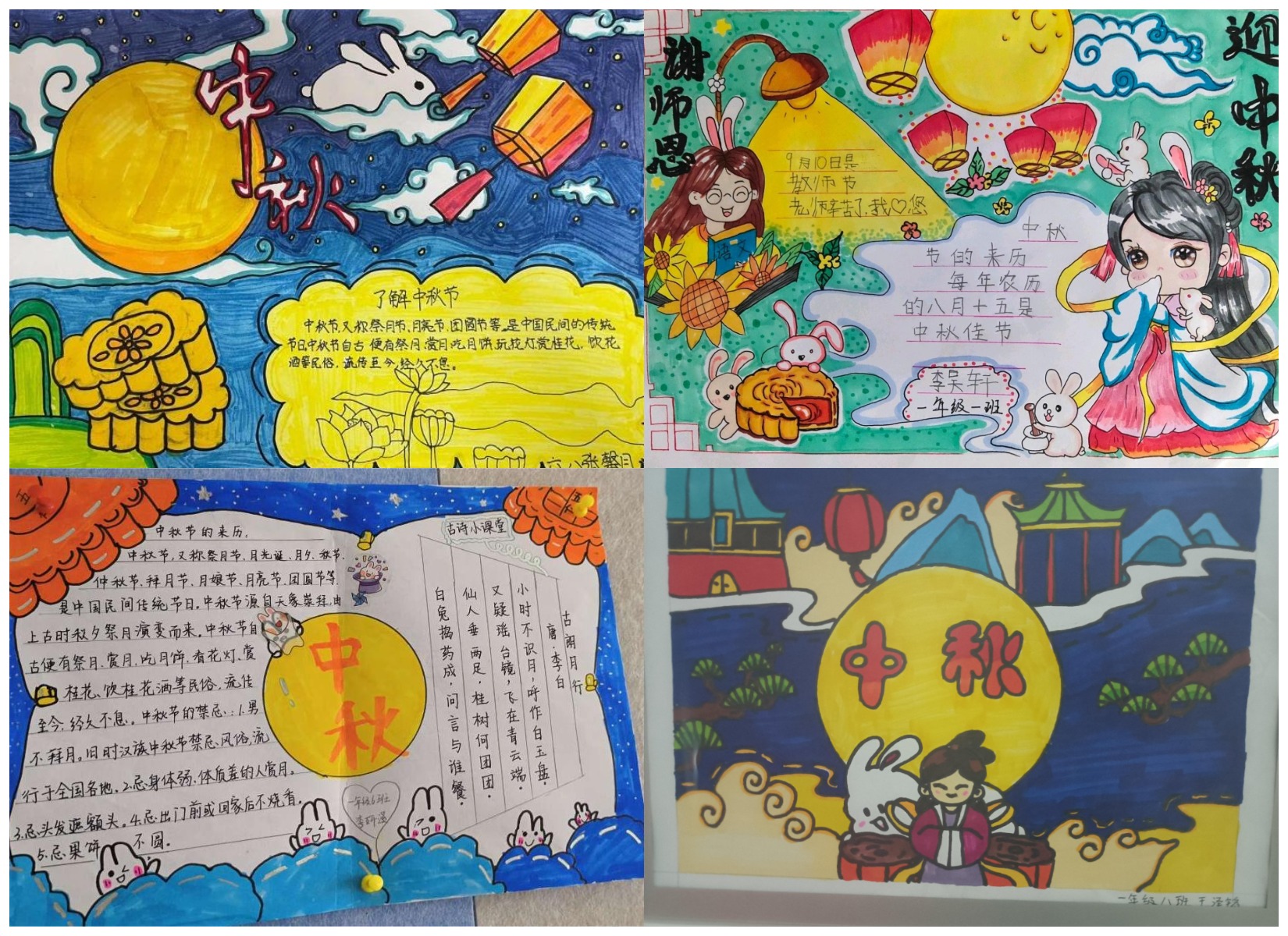 開展“樂中秋”手抄報(bào)、繪畫等活動。同學(xué)們用自己喜歡的方式,表達(dá)著對中秋佳節(jié)的喜愛。手抄報(bào)中有中秋民俗介紹、猜燈謎、思鄉(xiāng)詩詞等內(nèi)容,吸引著同學(xué)們駐足欣賞。
