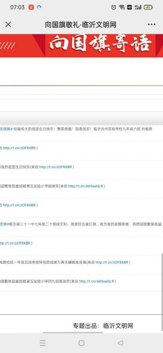 在“禮頌美麗新中國”中,同學(xué)們向著國旗敬禮,面對國旗,那種莊重的儀式感油然而生。同時,還組織了全體學(xué)生登錄文明網(wǎng),發(fā)表心聲感言,“向祖國告白”。一句句發(fā)自肺腑的祝福,一句句錚錚誓言表達著自己的決心。