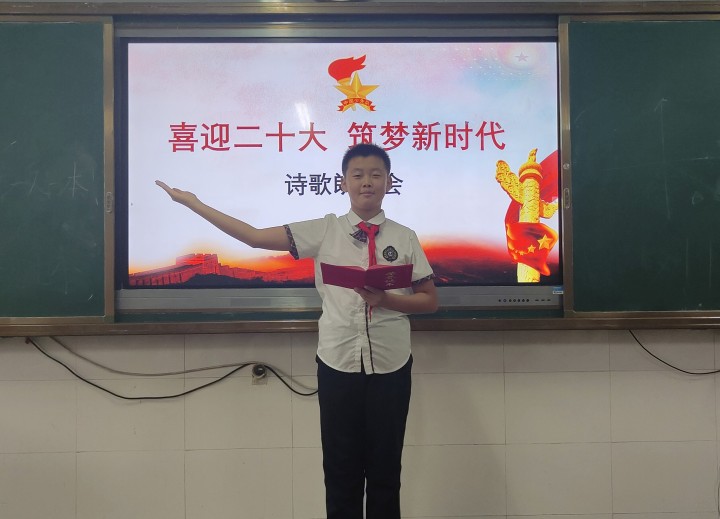 “詩頌美麗新中國”,同學(xué)們個個精神飽滿,意氣風發(fā),一首首或慷慨激昂,或深沉婉轉(zhuǎn)的詩歌,無不表達著對祖國母親的祝福。