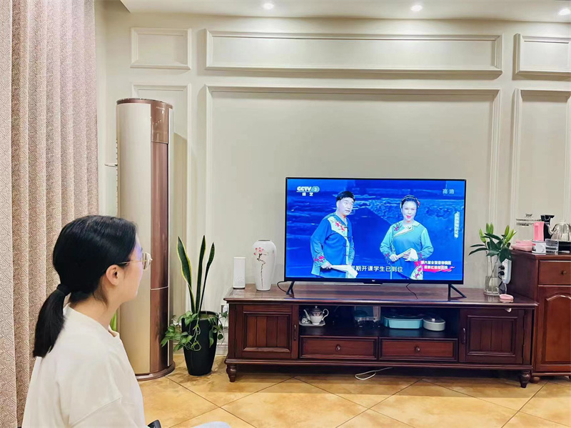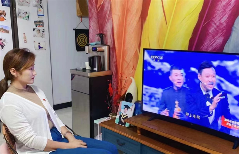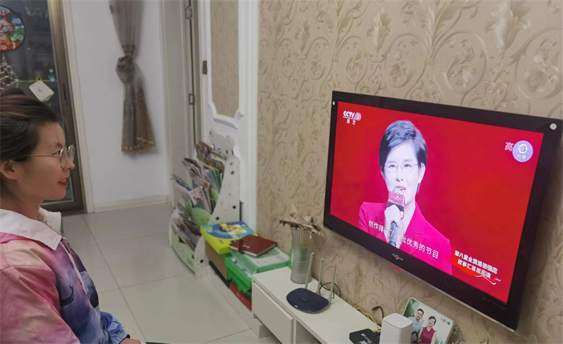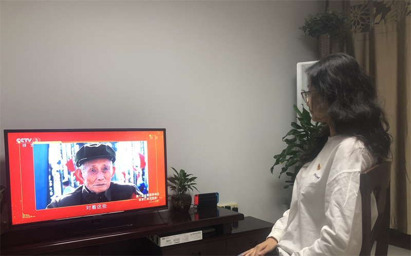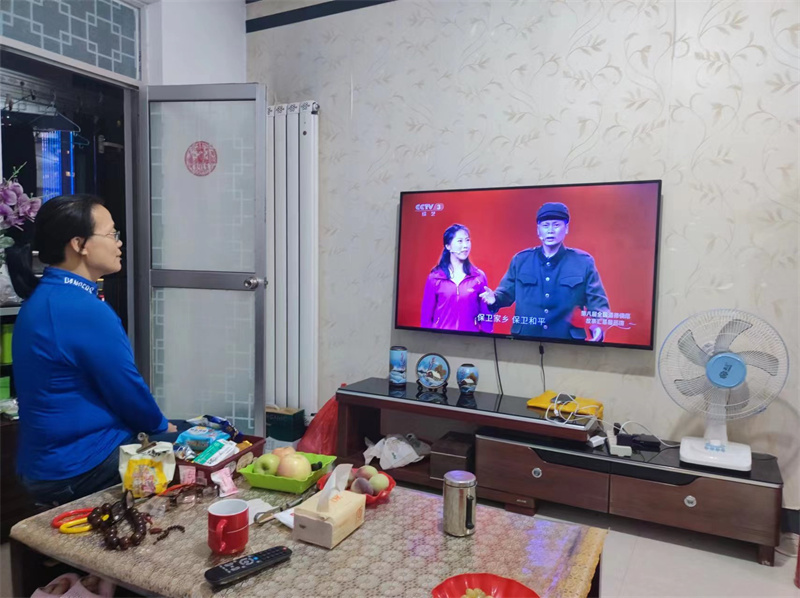 教師在認真觀看敬業(yè)奉獻模范曲藝小品《老兵捐獻》