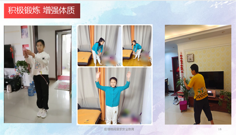 宅家期間,同學(xué)們的生活也是豐富多彩。他們在學(xué)習(xí)之余,用自己的實際行動回饋父母,幫父母分擔(dān)家務(wù),在勞動中有所收獲,從而體會父母的不易。他們每天進行科學(xué)合理的體育運動,切實有效地增加身體素質(zhì),通過繪畫、唱歌等方式放松身心,在無聲的戰(zhàn)役中不斷成長與進步。