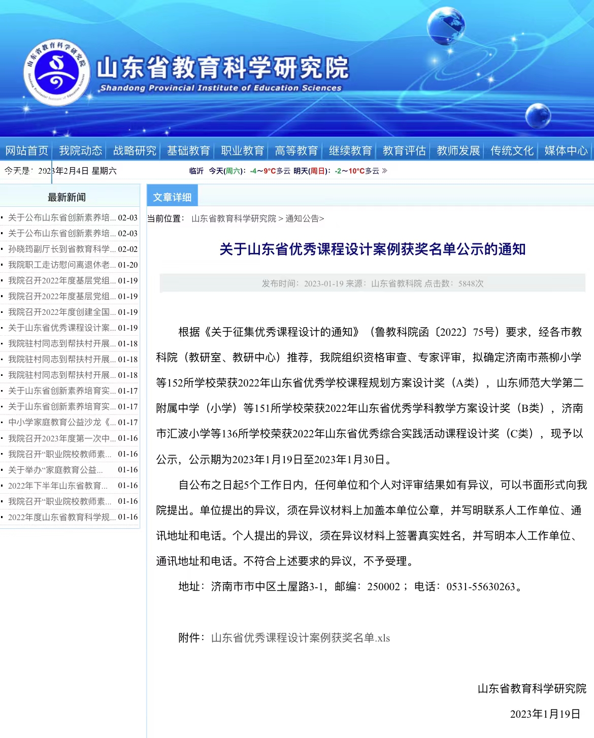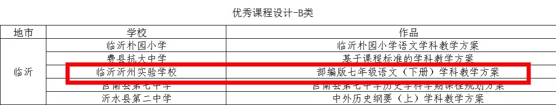 新年傳佳訊,捷報(bào)賀新春。近日,根據(jù)《關(guān)于征集優(yōu)秀課程設(shè)計(jì)的通知》要求,經(jīng)各市教科院(教研室、教研中心)推薦,省教科院組織專(zhuān)家評(píng)審,山東省公布了山東省優(yōu)秀課程設(shè)計(jì)案例獲獎(jiǎng)名單,臨沂沂州實(shí)驗(yàn)學(xué)校提交的A、B、C三類(lèi)課程設(shè)計(jì)均榜上有名。其中,臨沂沂州實(shí)驗(yàn)學(xué)校課程規(guī)劃方案設(shè)計(jì)榮獲山東省優(yōu)秀學(xué)校課程規(guī)劃方案設(shè)計(jì)獎(jiǎng)(A類(lèi)),部編版七年級(jí)語(yǔ)文(下冊(cè))學(xué)科教學(xué)方案設(shè)計(jì)榮獲山東省優(yōu)秀學(xué)科教學(xué)方案設(shè)計(jì)獎(jiǎng)(B類(lèi)),綜合實(shí)踐活動(dòng)《沂蒙虎頭鞋》課程設(shè)計(jì)榮獲山東省優(yōu)秀綜合實(shí)踐活動(dòng)課程設(shè)計(jì)獎(jiǎng)(C類(lèi))。
