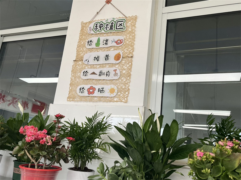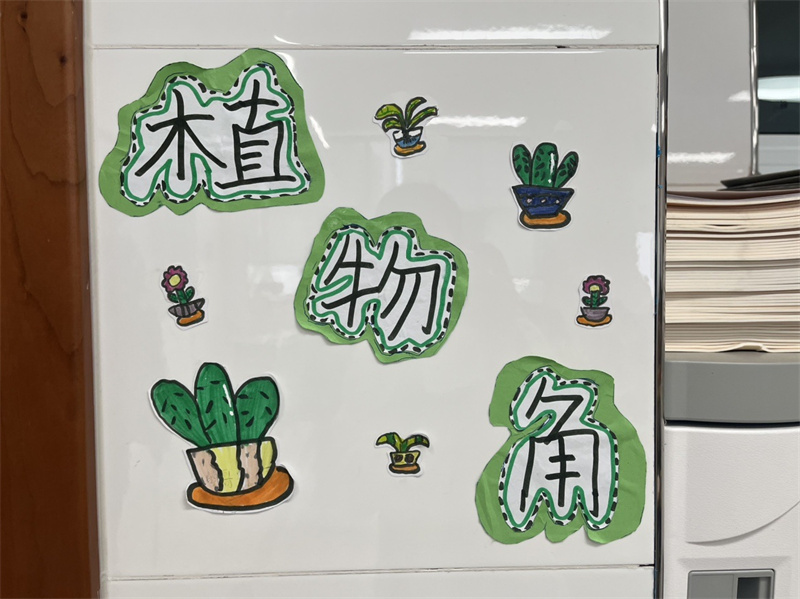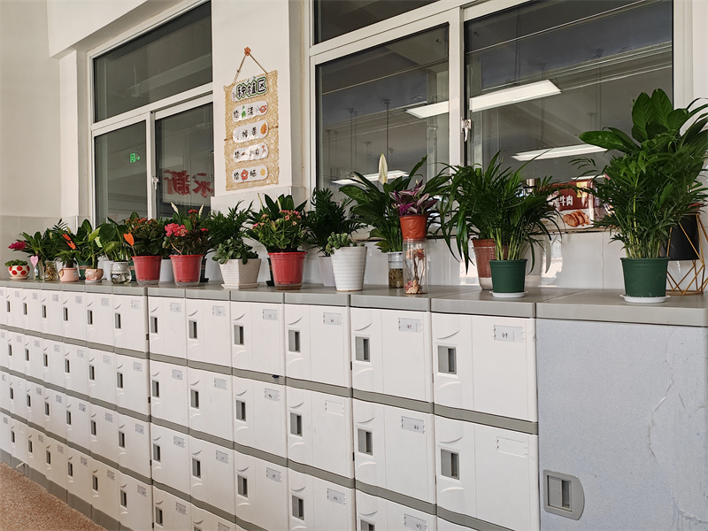 儲物柜上擺放了許多綠植,不僅可以美化教室環(huán)境,還可以吸收粉筆灰,讓我們可以在一個美麗健康的環(huán)境中快樂學習,茁壯成長。