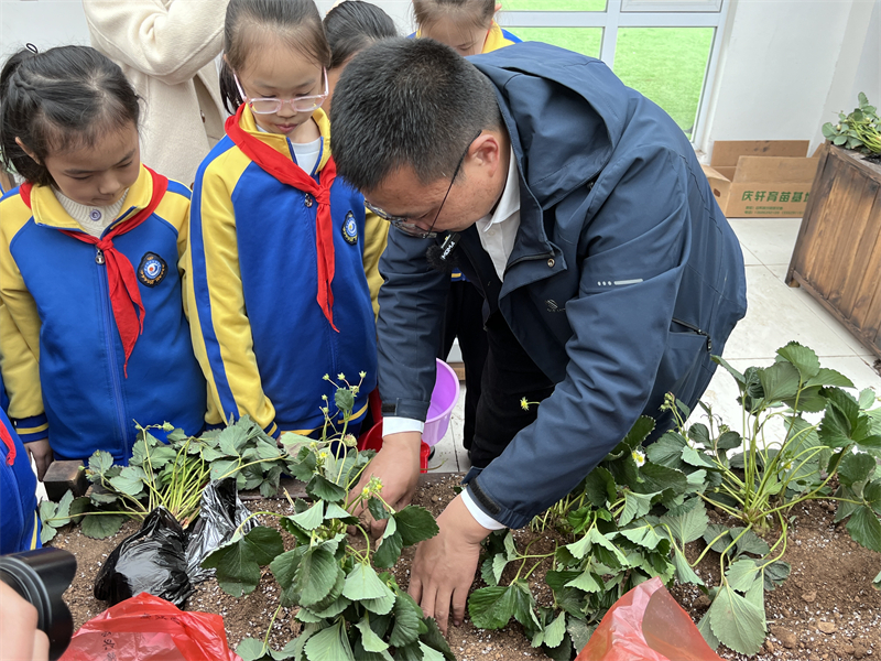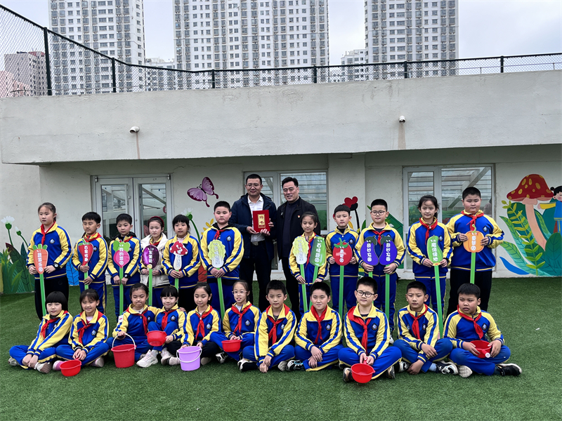 2023年3月21日,正值春分之際,開展了校園“開心農(nóng)場”啟動儀式?;顒友埩恕暗诎藢靡拭舌l(xiāng)村之星”、育苗專家呂慶軒做指導教師,勞動老師、班主任和學生共同參與。