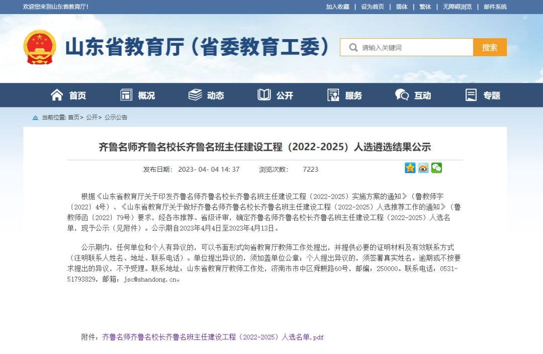 “三名工程”即齊魯名師、名校長、名班主任“三名建設(shè)品牌工程”,是我省加強新時代中小學教師和校長隊伍建設(shè)的重要舉措。山東省教育廳以“服務(wù)教師、培養(yǎng)名師、塑造四有好老師”為目標,以“三名工程”為抓手,旨在培養(yǎng)造就一支具有鮮明教育思想和成熟教學模式、能夠引領(lǐng)教育改革發(fā)展的專家型教師、校長和班主任隊伍,引領(lǐng)帶動全省教師、校長和班主任提升專業(yè)發(fā)展水平,為基礎(chǔ)教育改革發(fā)展更好地提供人才支持和智力保障,推動全省教育工作高質(zhì)量發(fā)展。