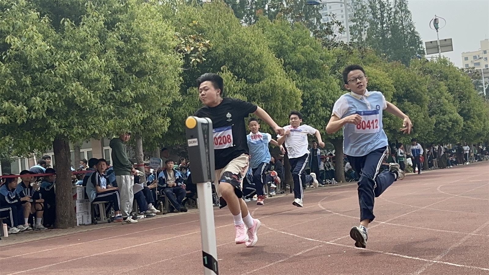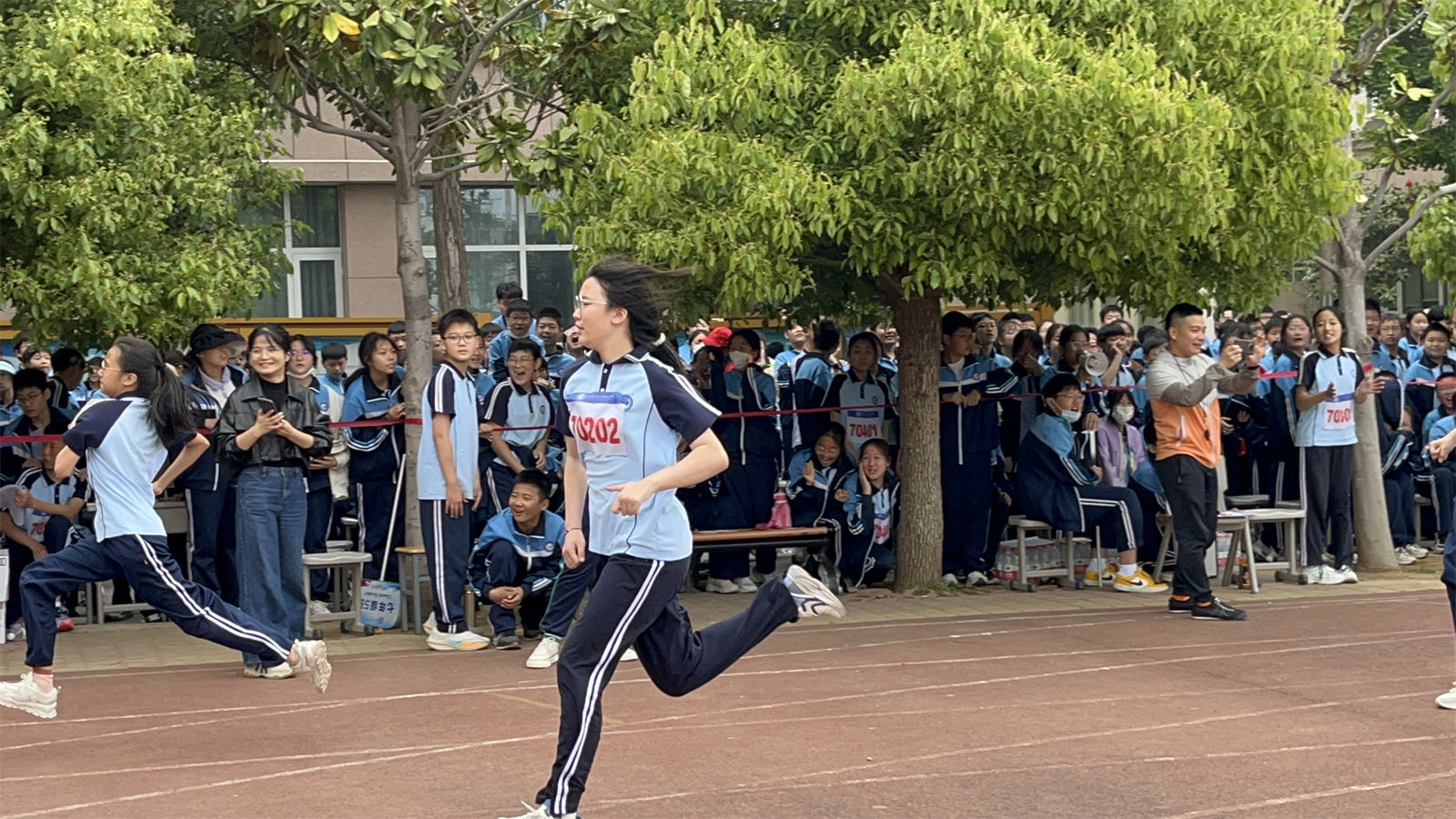 比賽中,運動員們奮勇爭先,努力拼搏,展示著更快、更高、更強的奧林匹克體育精神;裁判員嚴格履行職責,認真公正評判,確保各項比賽成績真實無誤;各班班主任精心組織觀眾,觀看的同學們更是激情澎湃,助威聲此起彼伏;學生和家長志愿者們認真做好服務工作;主席臺上,播音員的聲音不間斷地回響在整個運動場上,一篇篇加油稿成了激勵運動員拼搏向前的動力。