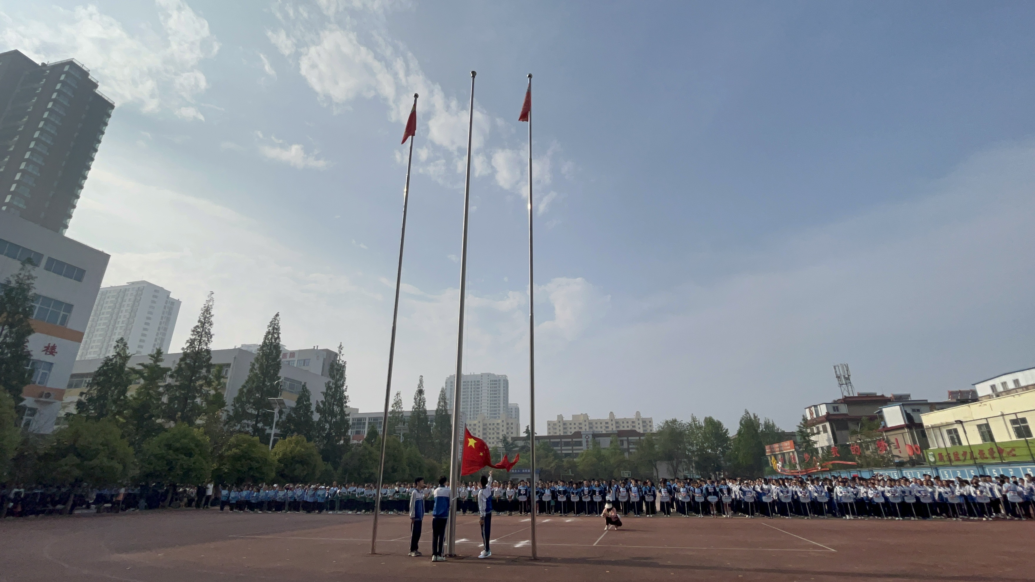 開幕式上首先舉行了升旗儀式,驕陽當頭,青春的熱血與力量,映照在冉冉升起的國旗上,激勵著每位運動員,奮力拼搏,勇爭佳績。