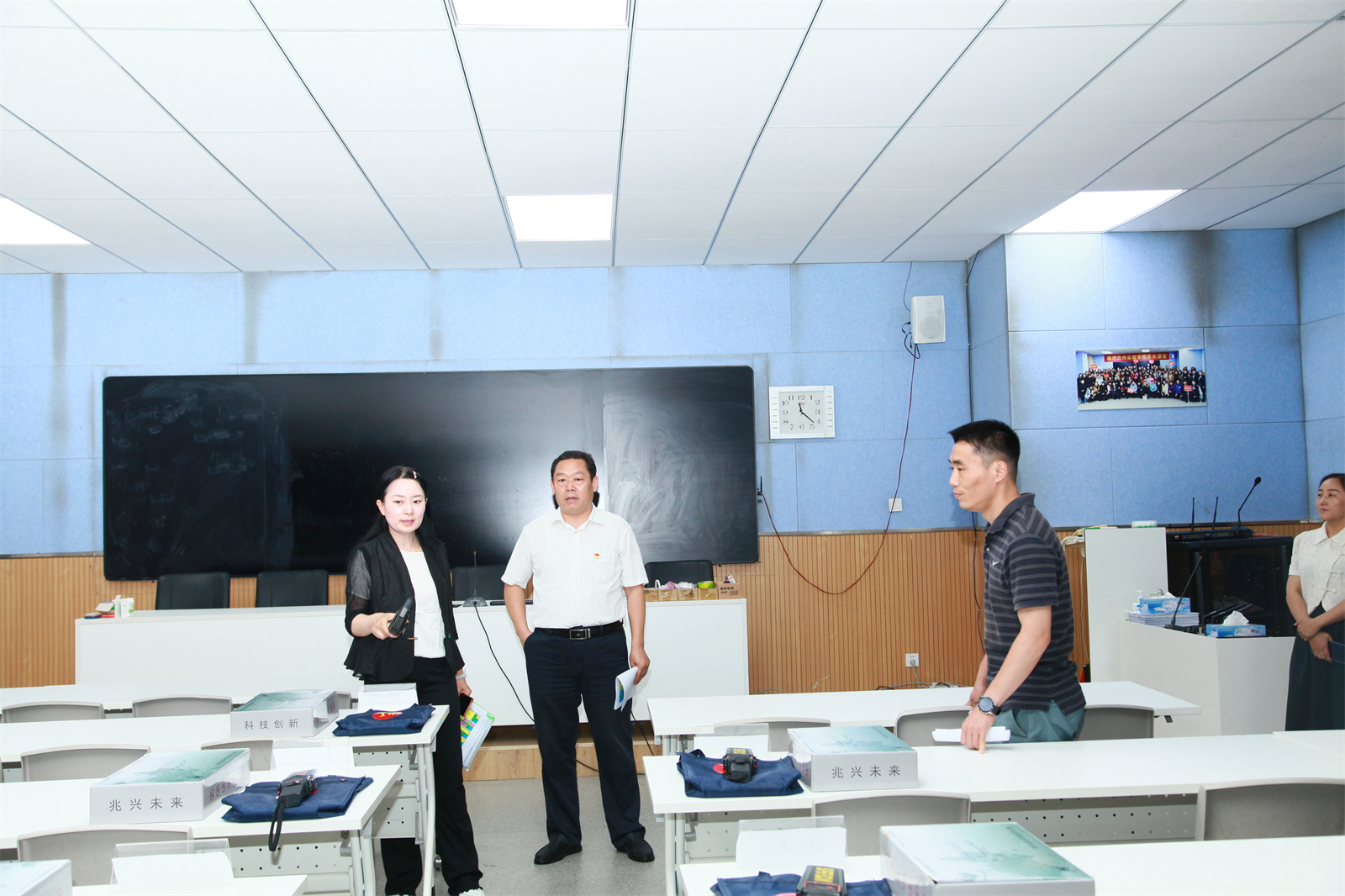 為確保2023年中考順利進行,營造規(guī)范標準、安全有序的良好考試環(huán)境,2023年6月12日上午,蘭山區(qū)招生委員會各位領(lǐng)導在蘭山區(qū)教體局體育發(fā)展服務(wù)中心張際坤主任,區(qū)教育考試中心副主任徐靜的帶領(lǐng)下,一行5人到我校檢查2023年中考考前準備工作。我校黨委書記、校長徐勤波,黨委委員、副校長張福生及相關(guān)科室主任全程陪同。