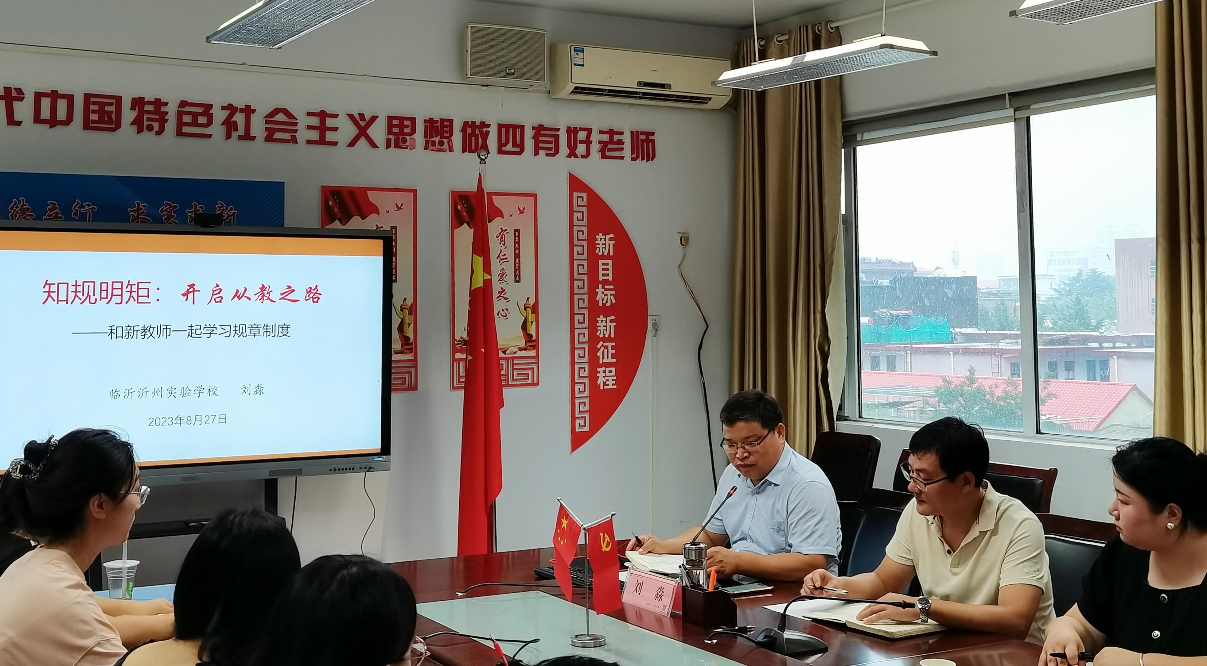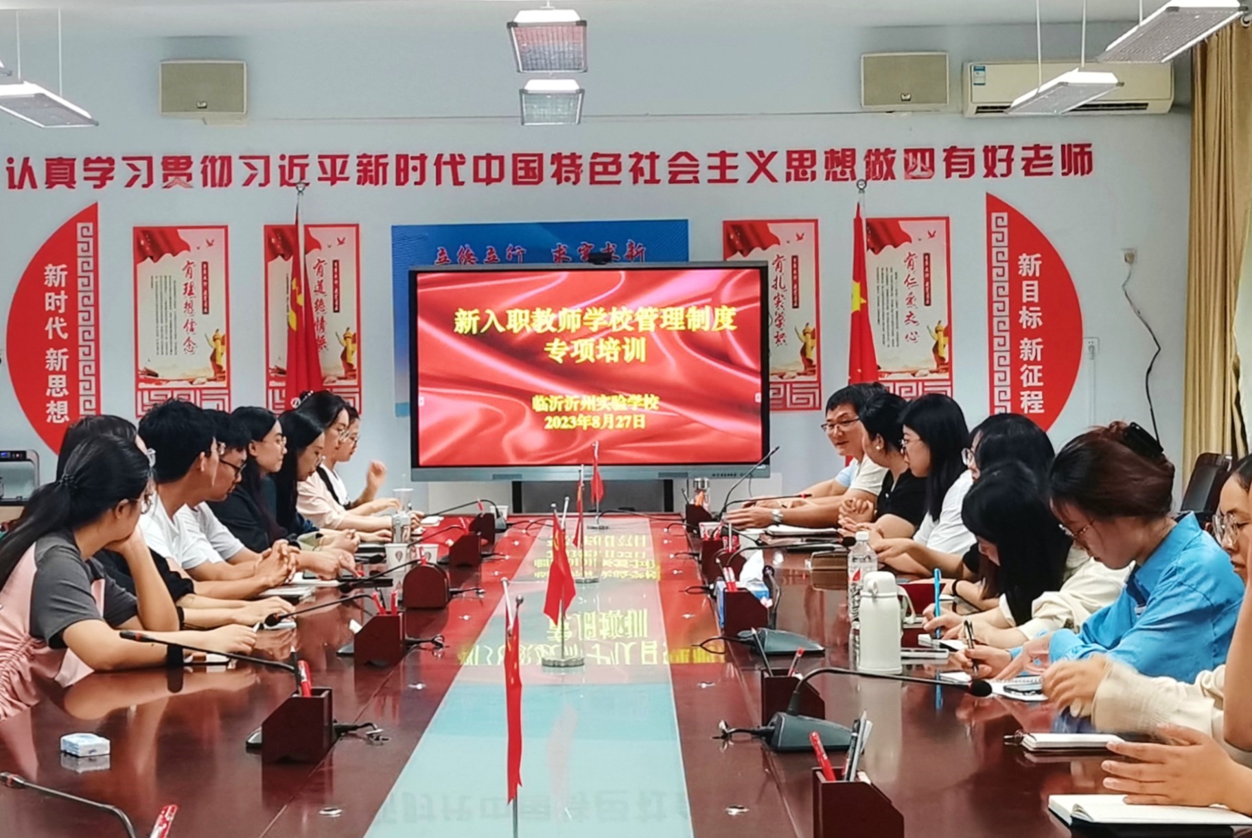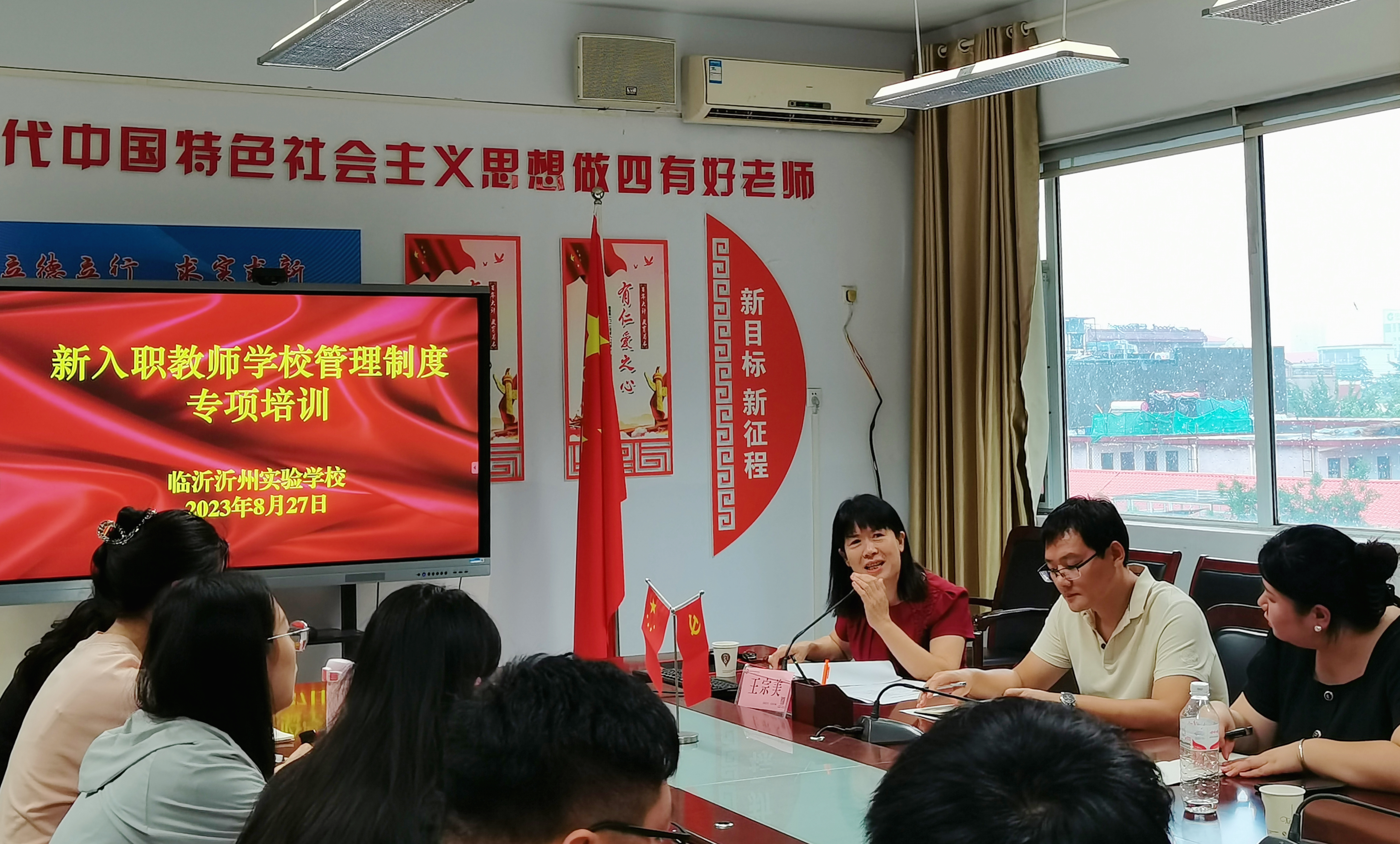 為進(jìn)一步嚴(yán)格工作紀(jì)律,強(qiáng)化崗位意識,提高工作效率和工作質(zhì)量,幫助新教師明確職責(zé)和工作目標(biāo),促進(jìn)教師專業(yè)化發(fā)展,2023年8月27日,臨沂沂州實(shí)驗(yàn)學(xué)校圍繞學(xué)校管理制度對新教師展開了專題培訓(xùn)。